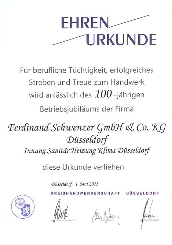 Wir sind eingetragener und zugelassener Betrieb zur Durchführung von Arbeiten an Gas- und Wasseranlagen. Selbstverständlich sind wir Mitglied der Innung Sanitär Heizung Klima Düsseldorf.
